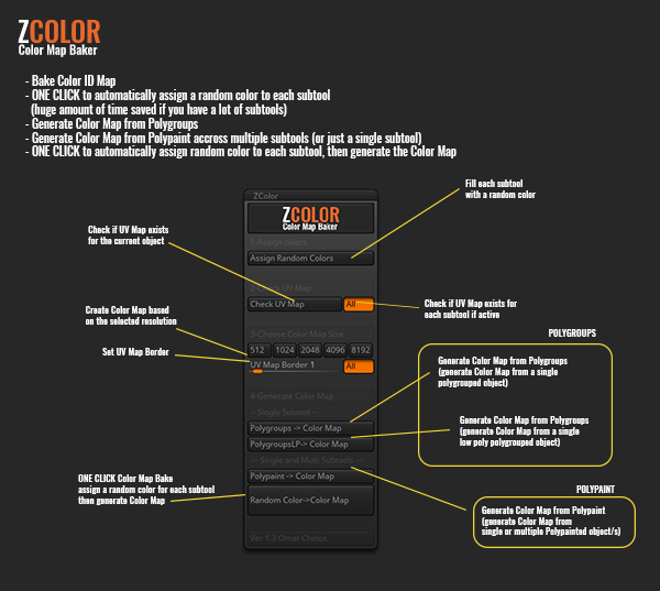 - ZBakeColor v1.3 latest release, compatible with ZBrush 4R8/2018+
